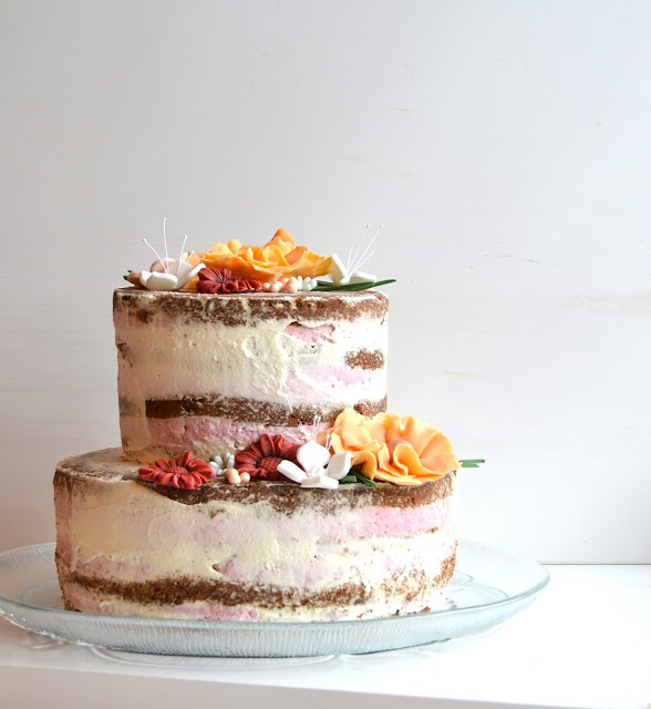 Vietimme viime viikonloppuna ystäväni ja hänen miehensä häitä tunnelmallisessa Luukin kartanossa. Valmistin juhliin kakut, joista pääkakkuna oli tämä Naked cake eli nakukakku. Pohjaksi valikoimme porkkanakakun ja muutaman mutkan kautta kakkun täytteeksi päätyi puolukkamousse.